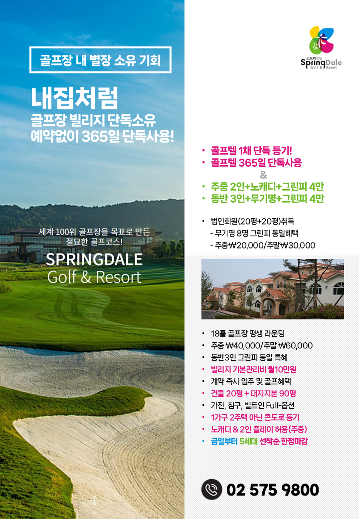 편안한 휴식처 스프링데일 골프&리조트 최근 소식을 만나보실 수 있습니다.